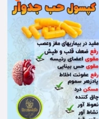 حب جدوار ضد درد قوی گیاهی، افزایش انرژی و تقویت ایمنی 🌿 کپسول جدوار: معجزهای طبیعی برای تسکین درد، افزایش انرژی و تقویت سیستم ایمنی بدن 🌿 آیا از دردهای مزمن، خستگیهای بیپایان و ضعف سیستم ایمنی رنج میبرید؟ آیا بهدنبال مسکن درد طبیعی هستید که بدون عوارض داروهای شیمیایی، آرامش و انرژی را به بدنتان بازگرداند؟ کپسول جدوار، محصولی برگرفته از عصارههای گیاهی کمیاب، با ترکیبی کاملاً طبیعی و قدرتمند، طراحی شده تا ضد درد قوی، ضد بیحالی و تقویتکننده سیستم ایمنی شما باشد
