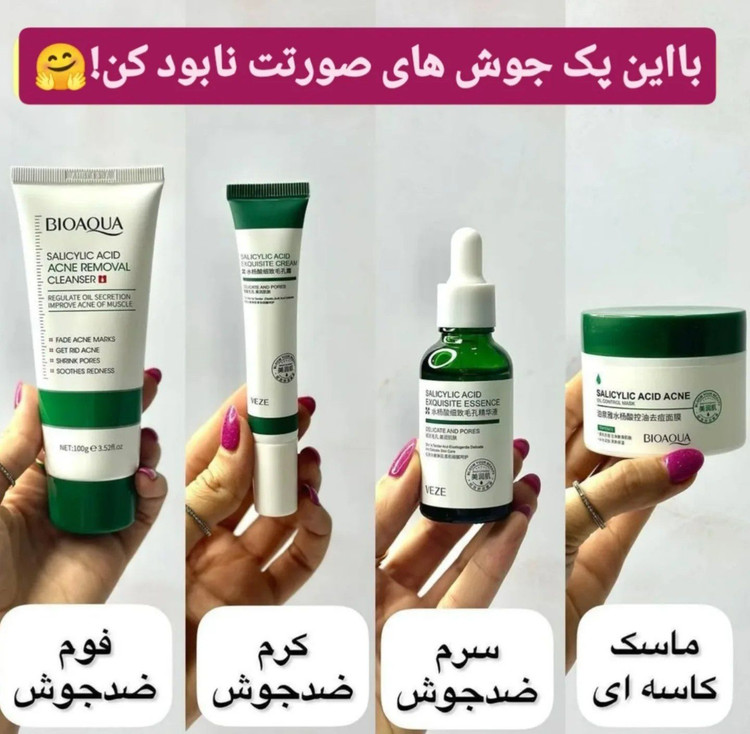 ✨اگه پوست چرب داری و مدام جوش میزنی چاره کارت استفاده از پک روتین سالیسیلیک اسیده ✨این پک شامل: ۱🫧فوم ضد جوش(روزانه یک الی ۲بار باید استفاده بشه) ۲🫧کرم ضد جوش (روی جوش های فعال ژچزده شود) ۳🫧سرم ضدجوش(شب ها قبل از خواب روی پوست تمییزبزنید) ۴🫧ماسک ضدجوش(یک ربع بعداز جذب سرم ماسک رو به پوست بزنید)از این ماسک علاوه بر صورت برای جوشهای پشت (کمر)هم استفاده میشود 🚚ارسال به سراسر ایران 👇 💸فوم : 💸پماد : 💸سرم : 💸کرم کاسه ای هر کدام: